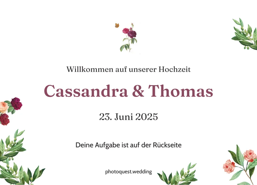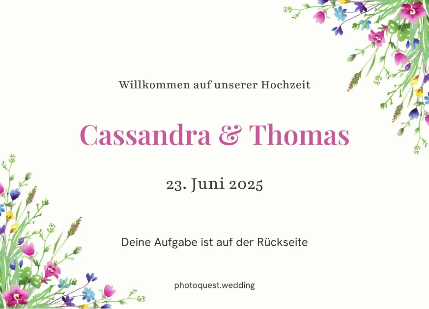 Eure Gäste entdecken ihre persönliche Foto-Mission. Jede Karte hat einen einzigartigen QR-Code, der sie direkt zur Aufgabe führt.